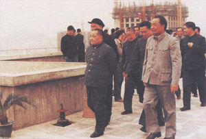 | 1984年,鄧小平同志南巡時(shí),登上集團(tuán)國商大廈,俯瞰深圳全景 | 1988年,李鵬同志視察集團(tuán)吉光電子有限公司 |