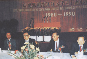 1990年10月,深圳經(jīng)濟(jì)特區(qū)十周年慶祝大會(huì)在香蜜湖舉行, 江澤民同志出席并視察香蜜湖公司 |