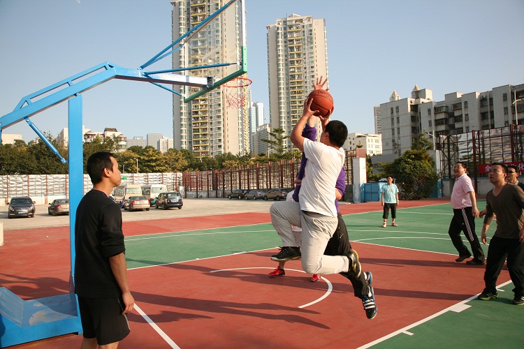 下午2時(shí),來(lái)自公司各部門(mén)、龍華分公司、天鵝公司、監(jiān)理公司組成的籃球、女子乒乓球隊(duì)員、啦啦隊(duì)列隊(duì)進(jìn)入籃球場(chǎng)。在公司領(lǐng)導(dǎo)簡(jiǎn)短致詞和裁判長(zhǎng)宣布比賽規(guī)則后,丁曉東董事長(zhǎng)做迎新年講話(huà)并宣布比賽開(kāi)始,正式拉開(kāi)賽事帷幕。各路隊(duì)員分成A、B兩個(gè)賽區(qū)展開(kāi)激烈的循環(huán)賽。A區(qū)首場(chǎng)比賽在“精英隊(duì)”(辦公室隊(duì))與天才隊(duì)(天鵝公司、財(cái)務(wù)部聯(lián)隊(duì))之間展開(kāi)。“精英隊(duì)”在3名隊(duì)員年齡大的情況下,有著籃球功底的鄭月英展示出一名后衛(wèi)的實(shí)力,接球、分球、組織進(jìn)攻步步到位,隊(duì)員拼搶積極,配合默契,比賽一開(kāi)始讓“天才隊(duì)”難以接招,但“天才隊(duì)”不甘示弱,雙方比分交替上升,難分伯仲。由于“精英隊(duì)”缺少替補(bǔ),隊(duì)員體力不支,最終敗下陣來(lái),晉級(jí)機(jī)會(huì)渺茫。最為激烈的是冠軍爭(zhēng)奪戰(zhàn)。A、B組兩隊(duì)勁旅在決賽中相遇,丁曉東帶領(lǐng)的“成功隊(duì)”(成本、工程管理部聯(lián)隊(duì)),對(duì)陣巫石明帶領(lǐng)的“烏龍隊(duì)”(龍華分公司隊(duì)),稍占上風(fēng)的“烏龍隊(duì)”一路領(lǐng)先,“成功隊(duì)”緊跟其后,在最后關(guān)頭,“成功隊(duì)”采取盯人戰(zhàn)術(shù),搶斷反攻,把比分追成10比10平局。整場(chǎng)比賽15分鐘時(shí)間很快結(jié)束,當(dāng)比賽離終場(chǎng)還剩下最后十幾秒鐘時(shí),“成功隊(duì)”隊(duì)員不幸折將離場(chǎng),比賽不得不采取投籃決勝負(fù)的方式,結(jié)果“成功隊(duì)”惜敗,屈居亞軍。