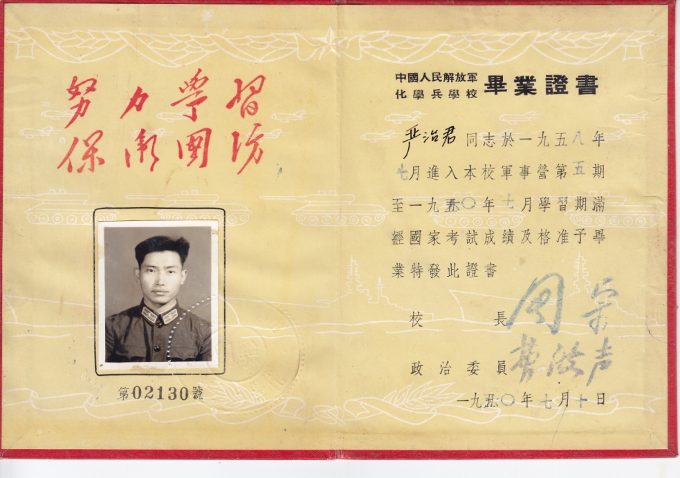 1950年10月,抗美援朝急需作戰(zhàn)指揮員,林華棟被派往華北軍政大學擔任為抗美援朝部隊培養(yǎng)干部的任務(wù),其中包括了我的父親嚴治君。那時,我父親17歲時,還是四川宜賓老家一個平頭百姓的小學徒工,在四川解放時參加劉鄧大軍后走上“保和平,為祖國,就是保家鄉(xiāng)”的朝鮮戰(zhàn)場,經(jīng)受了血與火的生死洗禮,在戰(zhàn)場上榮獲三等功;貒,父親被安排到解放軍防化學院進修學習,成為了一名軍隊大學生。他永遠感激共產(chǎn)黨培養(yǎng)了他,教育了他,讓他成為一個可以為國家做出貢獻之才。他時常掛在嘴邊的話:“我的戰(zhàn)友們,都犧牲在朝鮮戰(zhàn)場上;我的同學們都犧牲在越南戰(zhàn)場上。比起在戰(zhàn)場上犧牲了的千千萬萬個革命烈士,我已經(jīng)多活了很多年,我非常知足!松怨耪l無死,留取丹心照汗青’”。