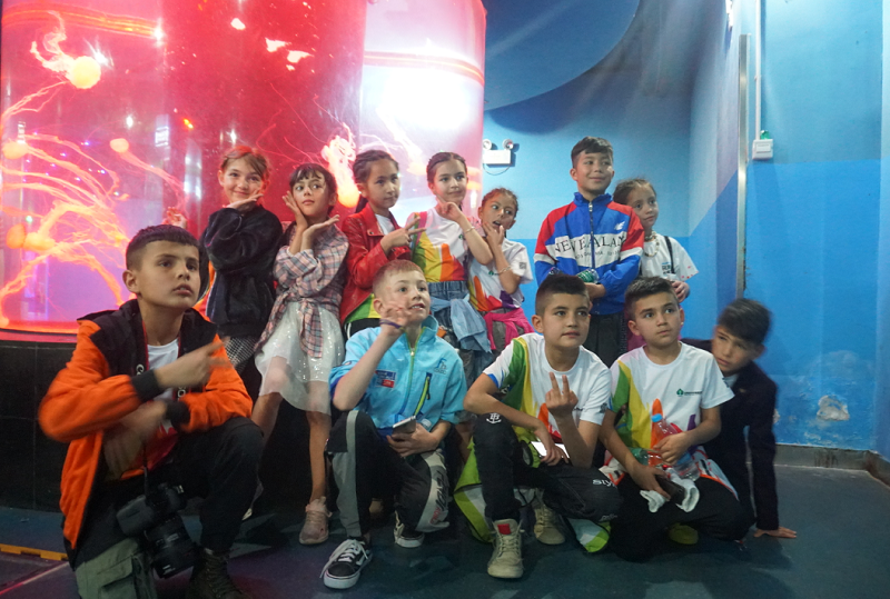 上午,孩子們來到小梅沙海洋世界。他們都是第一次來沿海,第一次接觸海洋動(dòng)物,心情十分激動(dòng),迫不及待但又非常有秩序。在海洋劇場觀看演出時(shí),看到可愛的海獅、海豚表演,孩子們非常興奮,尖叫聲此起彼伏;在白鯨劇場看白鯨表演,孩子們有些簡直不敢相信,一直問:“它們是活的嗎?”見到搖搖擺擺的小企鵝時(shí),孩子們都發(fā)出驚訝的聲音:“哇!真的是企鵝耶!”在看到五顏六色的水母時(shí),他們目不轉(zhuǎn)睛,格外出神;他們把小臉貼在海底隧道的玻璃上,眼睛一眨不眨地盯著游來游去的大海龜,不時(shí)發(fā)出驚嘆聲……
