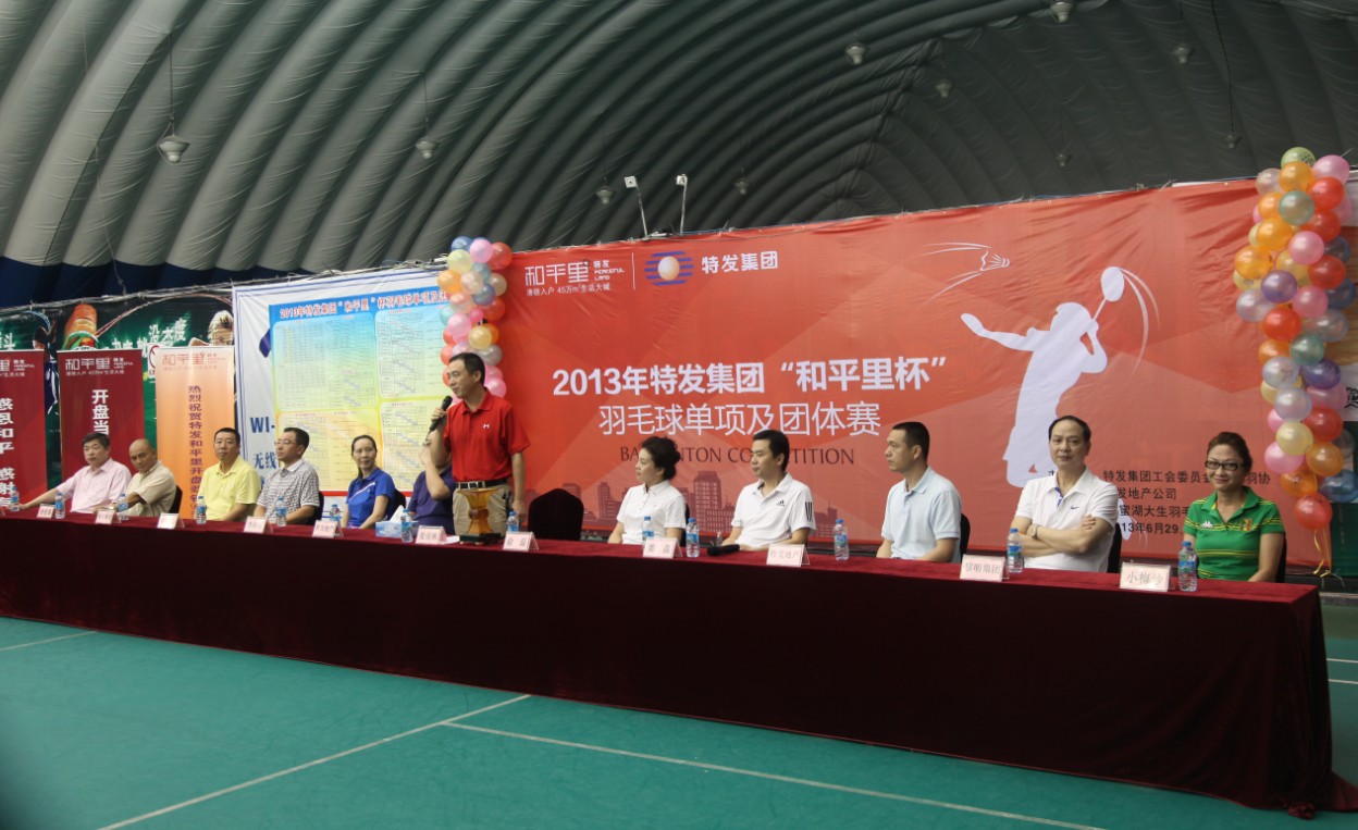 乘特發(fā)“和平里”項目成功推售之機,為進一步宣傳和推介“和平里”,豐富員工業(yè)余體育文化生活,集團工委會、特發(fā)羽協(xié)主辦、地產(chǎn)公司承辦的2013年特發(fā)“和平里”杯羽毛球單項及團體賽于6月29至30日在大生體育場舉行。集團總部和全資控股企業(yè)組成7支代表隊共53對選手、106名運動員參加比賽。