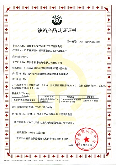 特發(fā)黎明長龍公司獲國家級CRCC及行政許可雙認(rèn)證證書