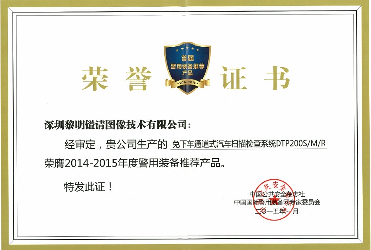 發(fā)布日期:2015/2/6 11:04:36 | 瀏覽次數(shù):7063 來源:特發(fā)黎明鎰清公司 張志彬1月7日,由中國公共安全雜志社、深圳市安全防范行業(yè)協(xié)會和CPS中安網(wǎng)聯(lián)合推出的“首屆警用裝備推薦產(chǎn)品”獎在深圳隆重揭曉。特發(fā)黎明鎰清公司生產(chǎn)的“免下車通道式汽車掃描檢查系統(tǒng)DTP200S/M/R”榮膺2014-2015年度警用裝備推薦產(chǎn)品。