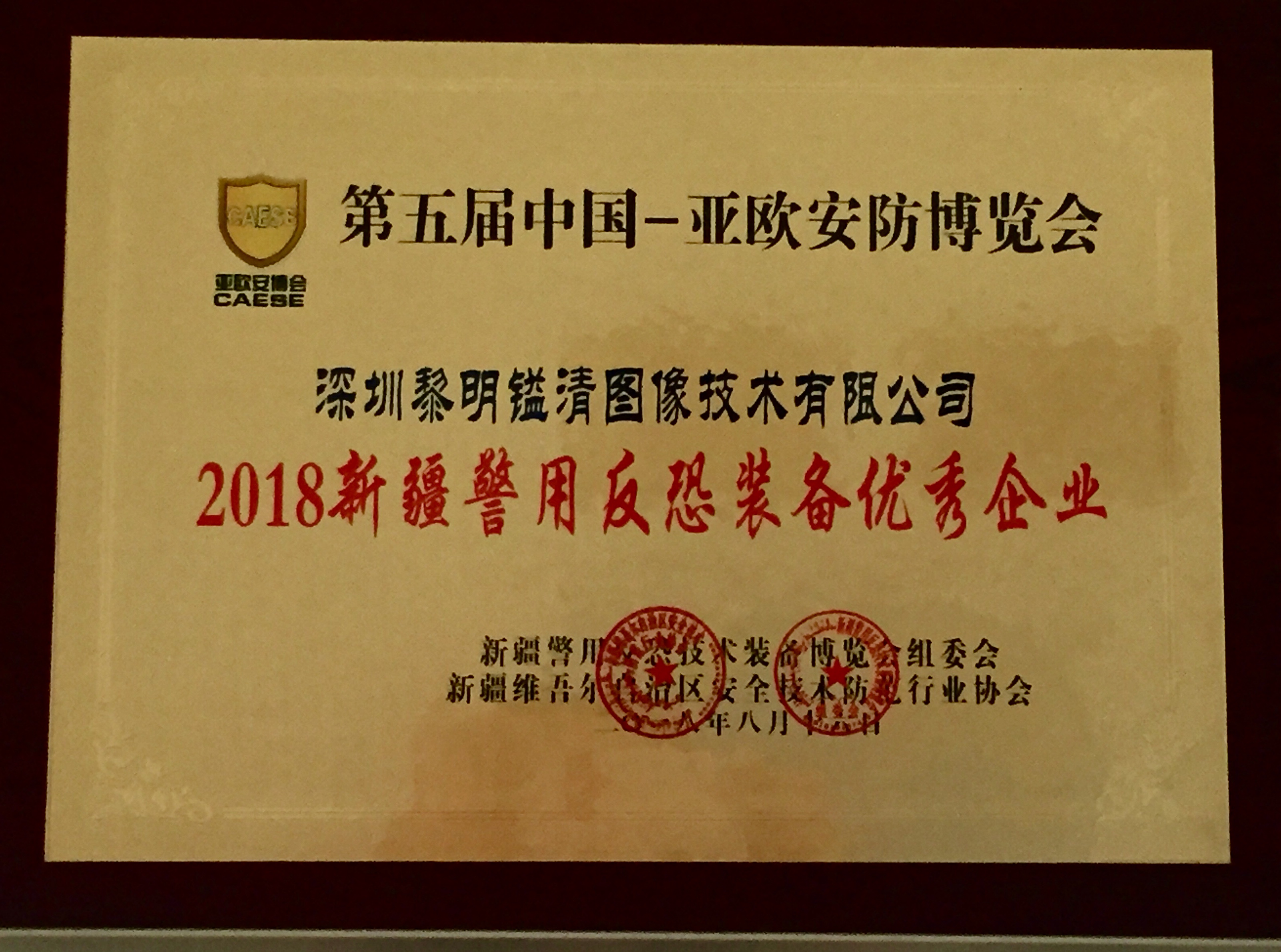 近日,市屬國企特發(fā)集團(tuán)系統(tǒng)企業(yè)深圳市黎明鎰清圖像技術(shù)有限公司在“第五屆中國-亞歐安防博覽會”上榮獲 “2018新疆警用反恐裝備優(yōu)秀企業(yè)”稱號。本屆博覽會由新疆維吾爾自治區(qū)公安廳主辦,來自國內(nèi)外的安防行業(yè)專家及業(yè)內(nèi)人士1000余人參加展會。