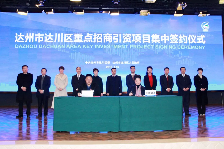 1月16日,特發(fā)集團(tuán)應(yīng)邀出席四川省達(dá)州市達(dá)川區(qū)2019年重點(diǎn)招商引資項(xiàng)目集中簽約儀式。俞磊副總裁代表特發(fā)集團(tuán)與達(dá)州市達(dá)川區(qū)政府簽訂“達(dá)川區(qū)人民政府與深圳市特發(fā)集團(tuán)有限公司戰(zhàn)略合作框架協(xié)議”,并作為參與集中簽約企業(yè)代表發(fā)言。