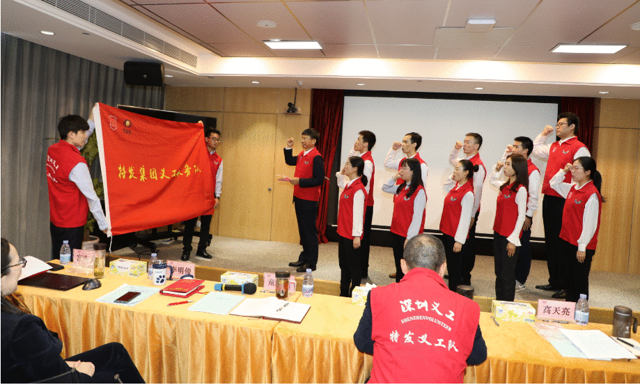 授旗儀式開始前,童慶火同志宣讀《關(guān)于成立深圳市特發(fā)集團有限公司志愿服務(wù)隊等14個志愿服務(wù)組織的決定》,隨后張俊林同志為特發(fā)信息志愿服務(wù)隊、特力集團志愿服務(wù)隊等13家志愿服務(wù)組織進行授旗。接著,由高天亮同志領(lǐng)誓,來自集團各企業(yè)的10名志愿者代表進行了莊嚴(yán)的宣誓,承諾盡己所能,幫助他人,服務(wù)社會,傳遞愛心,為建設(shè)共同進步的和諧社會貢獻力量!