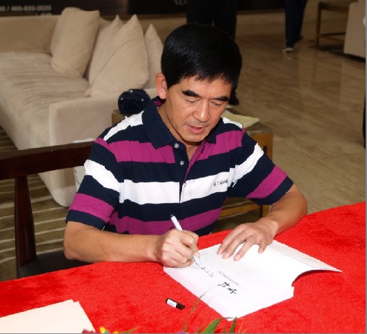 快樂的氣氛中時間總是過得飛快,幾個小時匆匆而過。收桿走下高爾夫球場,略作休整,嘉賓們陸續(xù)來到舉行晚宴的大廳。印著“特發(fā)集團三十周年聯(lián)誼活動”金字紅底的背景板和宣傳牌裝飾于大廳的正面和兩旁各個墻柱,把喜慶的氣氛渲染得十分濃烈。休息區(qū)里,劉愛群董事長與市老領(lǐng)導和特發(fā)老前輩、各界朋友們親切交流,拉特發(fā)家常,話集團前程。和聲細語間,劉董事長親手在一本本特發(fā)人自己撰寫、記錄著特發(fā)市場化轉(zhuǎn)型歷程的《生機——一家傳統(tǒng)國企轉(zhuǎn)型密碼》一書扉頁上簽名,向在場嘉賓們介紹、贈閱。