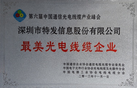 會議表彰了10家“中國最美光電線纜企業(yè)”和22名“中國最美光電線纜人”。特發(fā)信息被評為最美光電線纜企業(yè),特發(fā)信息光纜分公司陸秉義總經(jīng)理和張偉民副總經(jīng)理當(dāng)選最美光電線纜人。