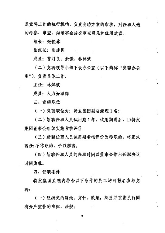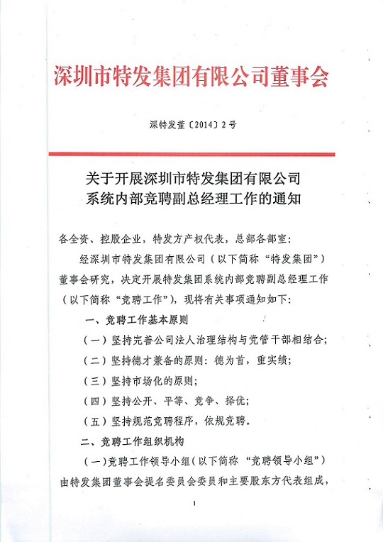 關于開展深圳市特發(fā)集團有限公司系統(tǒng)內部競聘副總經(jīng)理工作的通知