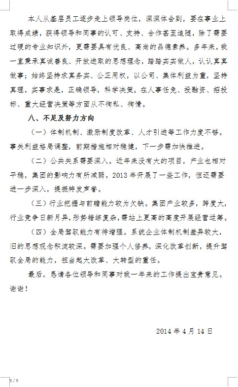 2013年度述職述廉報告