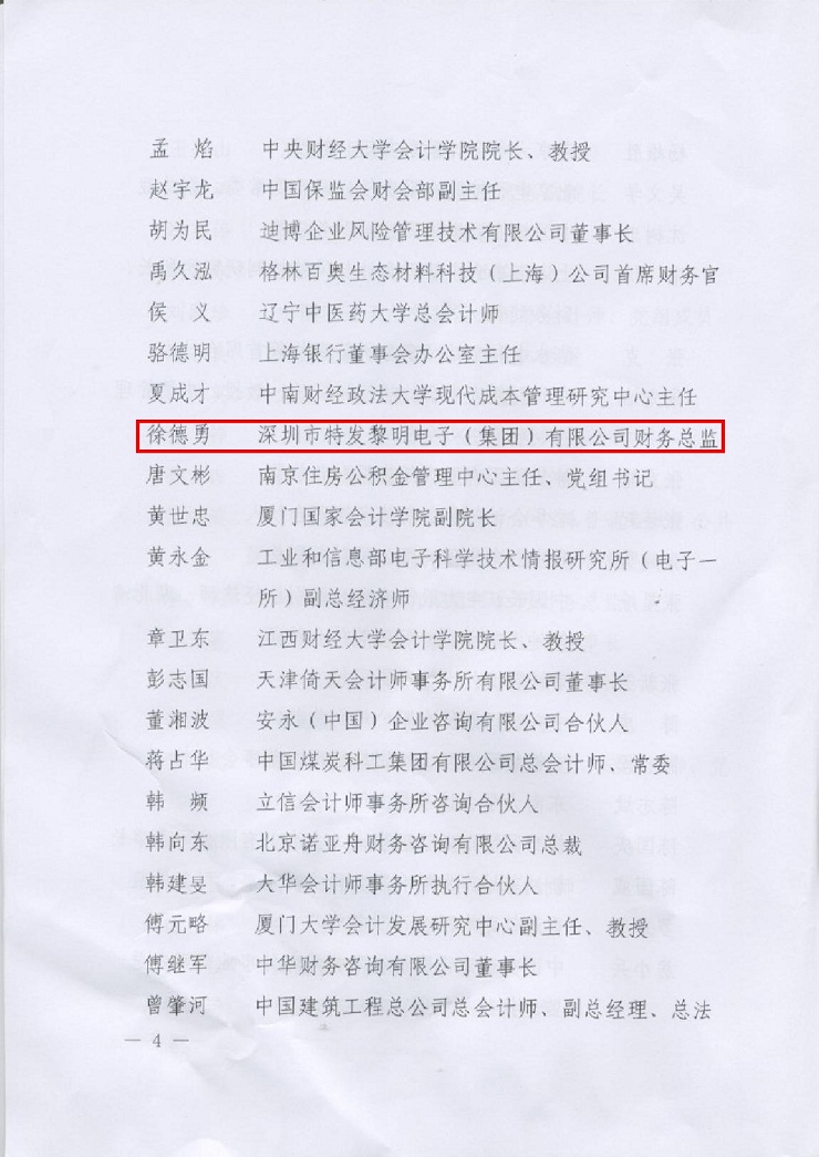特發(fā)黎明公司徐德勇獲聘財(cái)政部管理會(huì)計(jì)咨詢(xún)專(zhuān)家